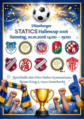 Zum Start des Jahres steht der S´TATICS Hallen-Cup 2026 an. Morgens ab 9:00h spielen 12 Teams aus dem Bereich Freizeit und Betriebssport um den BSG Cup. In drei Vierergruppen wird in der Halle am Neuen Krug der Turniersieger ausgespielt.