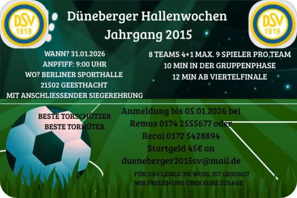 Das eigene Turnier der Düneberger Hallenwochen startet am 25.1.26 nachmittags