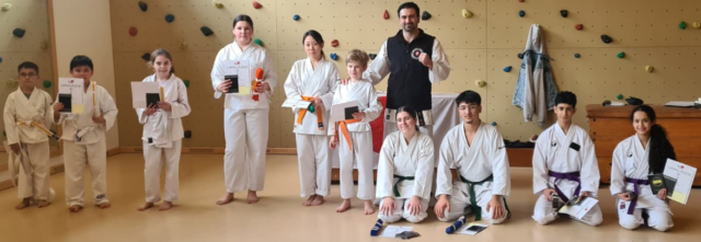 Der Kampfsport-Lehrgang war ein voller Erfolg! Insgesamt nahmen 7 Erwachsene und 18 Kinder an dem Lehrgang teil und waren alle von den Übungen begeistert. Anschließend hatten 11 Karate-ka’s und 3 Kickboxer ihre Gürtelprüfung, darunter auch unser Karate Sensei Daniel. Herzlichen Glückwunsch an die Prüflinge, alle haben bestanden!